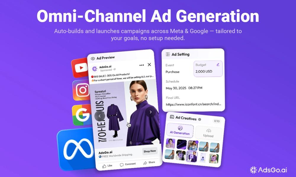 What makes AdsGo different: • Multi-Agent Analytics — Simulates a team of experts to analyze your product, audience & market • Omni-Channel Ad Generation — Auto-builds campaigns for Google & Meta with no manual setup • AI Creative Studio — Generates pro-level headlines, visuals & ad copy tailored to your brand • ROAS-Based Budget Allocation — 24/7 auto-optimization of bids & budgets to maximize returns • Auto Campaign Regenerator — Keeps campaigns fresh with weekly strategy & creative updates • AdsGo Mobile — Create and launch campaigns on the go